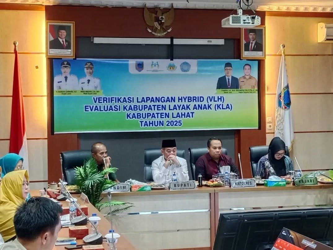 TEBARKAN – LAHAT – Bupati Lahat, Bursah Zarnubi mengikuti kegiatan Verifikasi Lapangan Evaluasi KLA dengan Kementerian Pemberdayaan Perempuan dan Perlindungan Anak Republik Indonesia, Deputi Bidang Pemenuhan Hak Anak dan Kepala Dinas Pemberdayaan Perempuan dan Perlindungan Anak Provinsi Sumatera Selatan melalui Zoom Meeting. Jum’at ( 09/05/2025 ), bertempat di Ops Room Sekretariat Pemerintah Kabupaten Lahat.