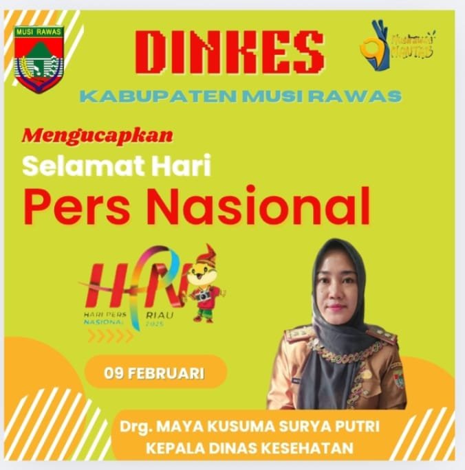 Dinas Kesehatan Musi Rawas Mengucapkan Hari Pers Nasional 2025 admin09/02/202506/04/202571 Dilihat Kepala Dinas Kesehatan Musi Rawas drg. Maya Kusuma Surya Putri Post Views: 71 Pos terkaitBupati Hj. Ratna Machmud Lantik Pejabat Eselon II di Lingkungan Pemkab Musi RawasAr.Dion Hary Kader GP Ansor Musi Rawas Terima Penghargaan Sebagai Arsitek Gedung Aswaja CenterWakil Bupati H. Suprayitno Meresmikan Program Pemberdayaan Pesantren BSI Usaha Peternakan Bebek PetelurBupati Ratna Machmud Kembali Dianugrahi Penghargaan Universal Health CoverageBupati Hj. Ratna Machmud Berikan Penghargaan Pemenang Lomba PHBS dan Posyandu Tingkat Provinsi SumselMeriah dan Penuh Antusiasme di Musi Rawas Lomba Senam Anak Indonesia Hebat se-Sumsel