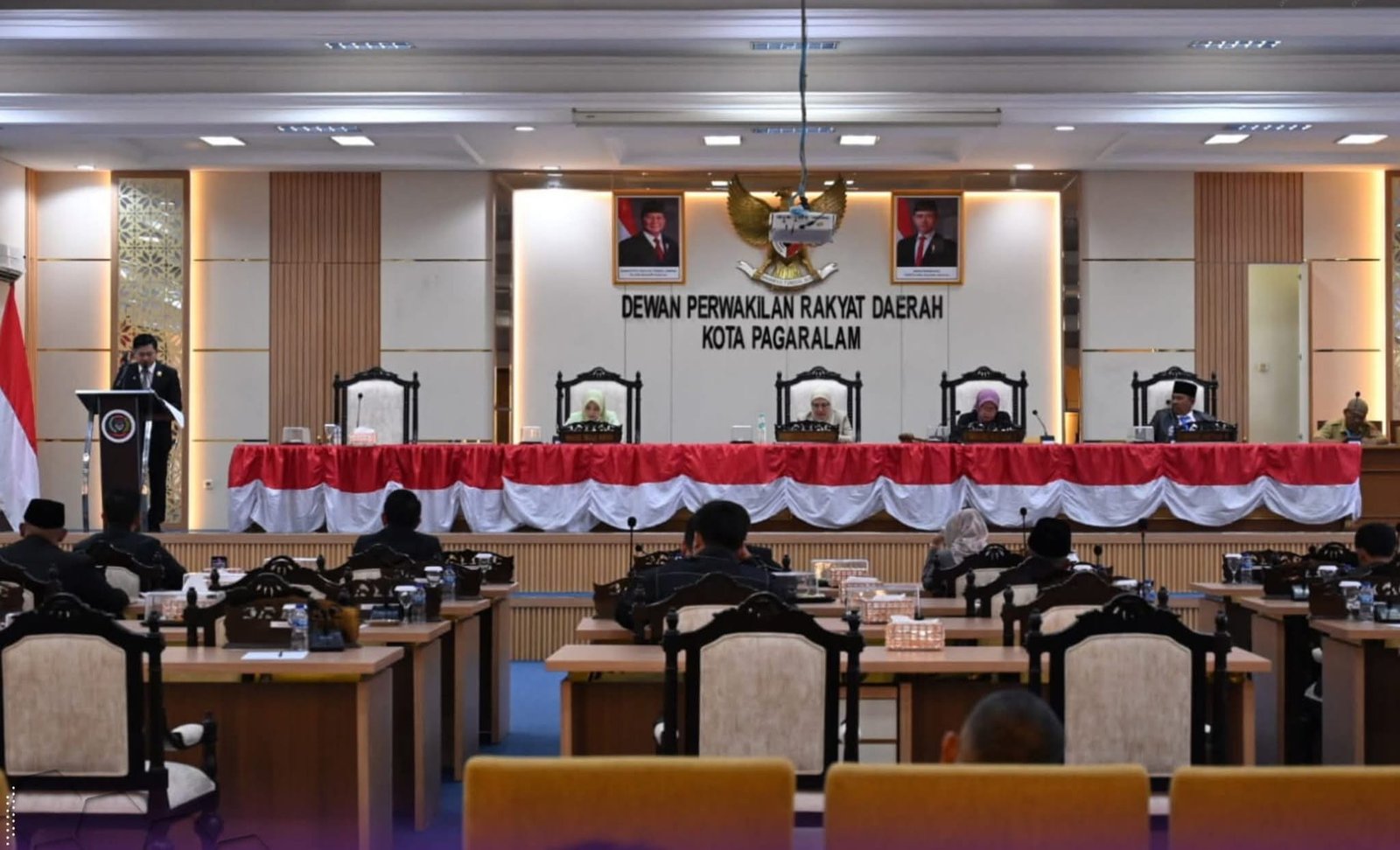 TEBARKAN- PAGAR ALAM – Dewan Perwakilan Rakyat Daerah (DPRD) Kota Pagar Alam menggelar rapat paripurna dalam Sidang Paripurna VIII sidang Ke-3 atas jawaban pandangan fraksi-fraksi terkait Rancangan Peraturan Daerah Laporan Pertanggungjawaban Pelaksanaan (Raperda LPP) tahun anggaran 2024, yang disampaikan Wakil Wali Kota Pagar Alam Hj. Bertha di ruang paripurna, Jumat (13/6/2025).