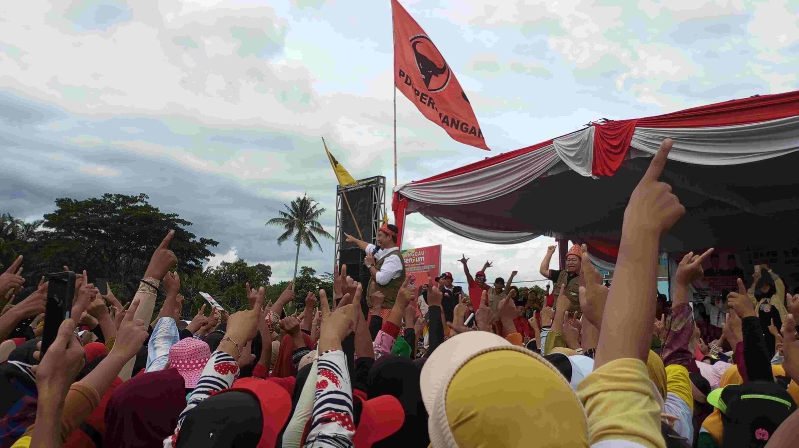 Dengan cuaca yang baik, suasana lokasi kampanye Monologis pasangan ROIS terlihat begitu indah, masyarakat riang gembira dan sangat antusias, saat kibaran bendera warna merah, kuning dan hijau mulai berkibar dihembus angin.