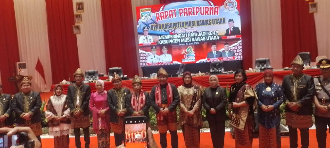 MURATARA – TEBARKAN – Rapat Paripurna Istimewa DPRD Kabupaten Muratara dalam rangka memperingati Hari Jadi ke-12 Kabupaten Musi Rawas Utara, dipusatkan di Gedung Griya Iluk, Senin (23/6/2025).