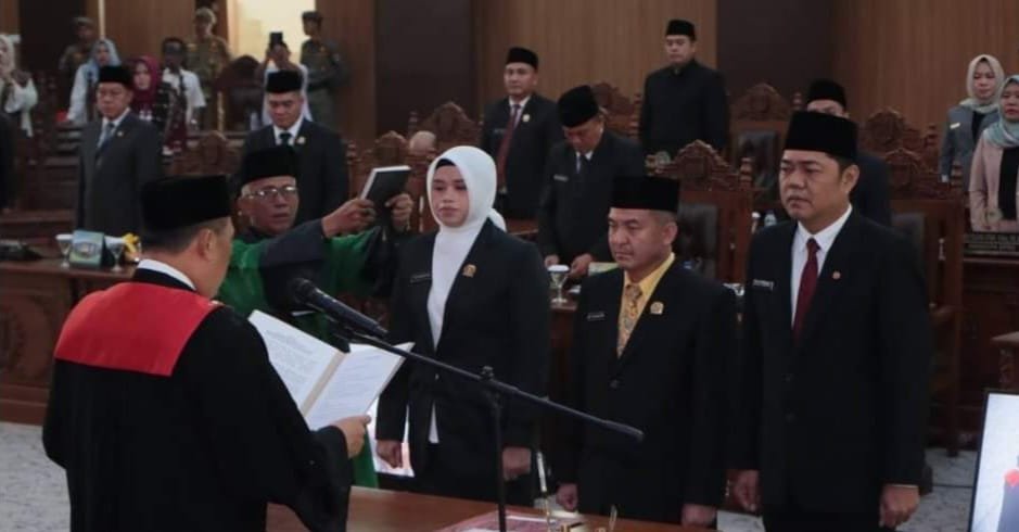 TEBARKAN.COM – LUBUKLINGGAU – Rapat paripurna DPRD Kota Lubuklinggau dalam rangka pengucapan sumpah/janji pimpinan ketua dan wakil ketua DPRD Kota Lubuklinggau masa jabatan 2024-2029 yang dihadiri Penjabat (Pj) Wali Kota Lubuklinggau, H Koimudin di gedung paripurna DPRD Kota Lubuklinggau, Rabu (23/10/2024).