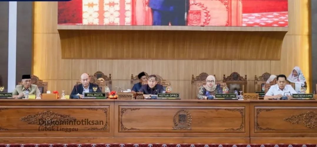 LUBUKLINGGAU – Rapat Paripurna DPRD Kota Lubuk Linggau dalam rangka mendengarkan pandangan umum fraksi-fraksi dewan terhadap 1 Raperda usulan Pemkot Lubuk Linggau dan jawaban fraksi-fraksi dewan atas tanggapan eksekutif terhadap 5 Raperda inisiatif di Ruang Rapat Paripurna DPRD Kota Lubuk Linggau yang dihadiri Wali Kota Lubuk Linggau, H Rachmat Hidayat didampingi Wakil Wali Kota Lubuk Linggau, H Rustam Effendi, Senin (9/2/2026).